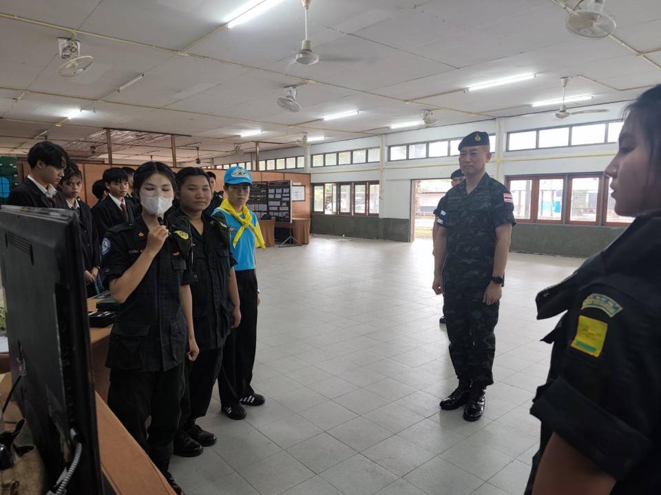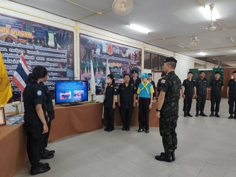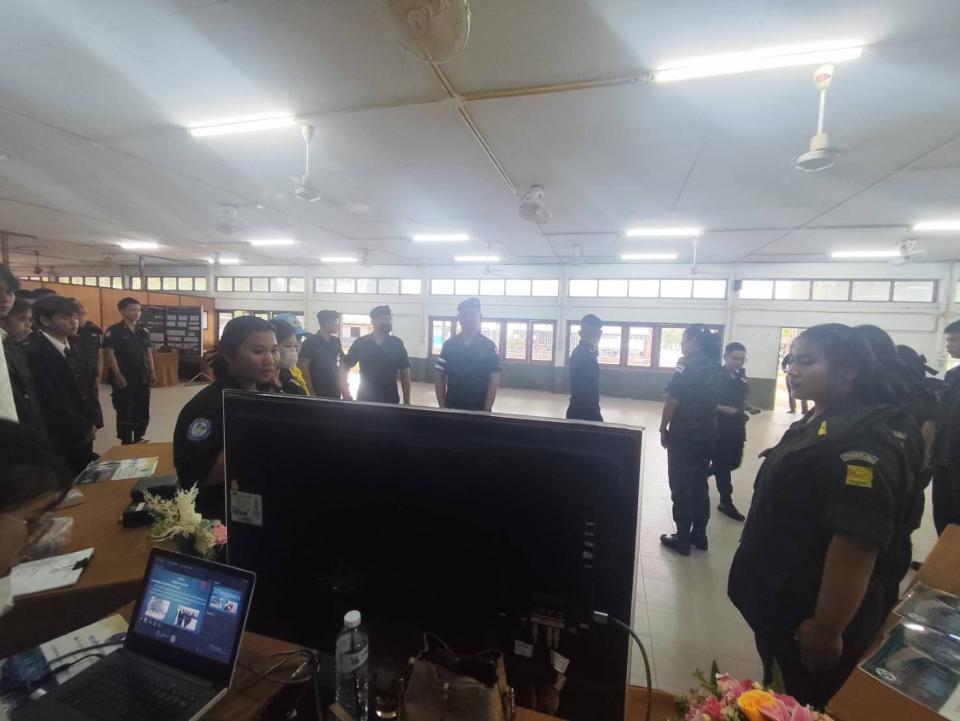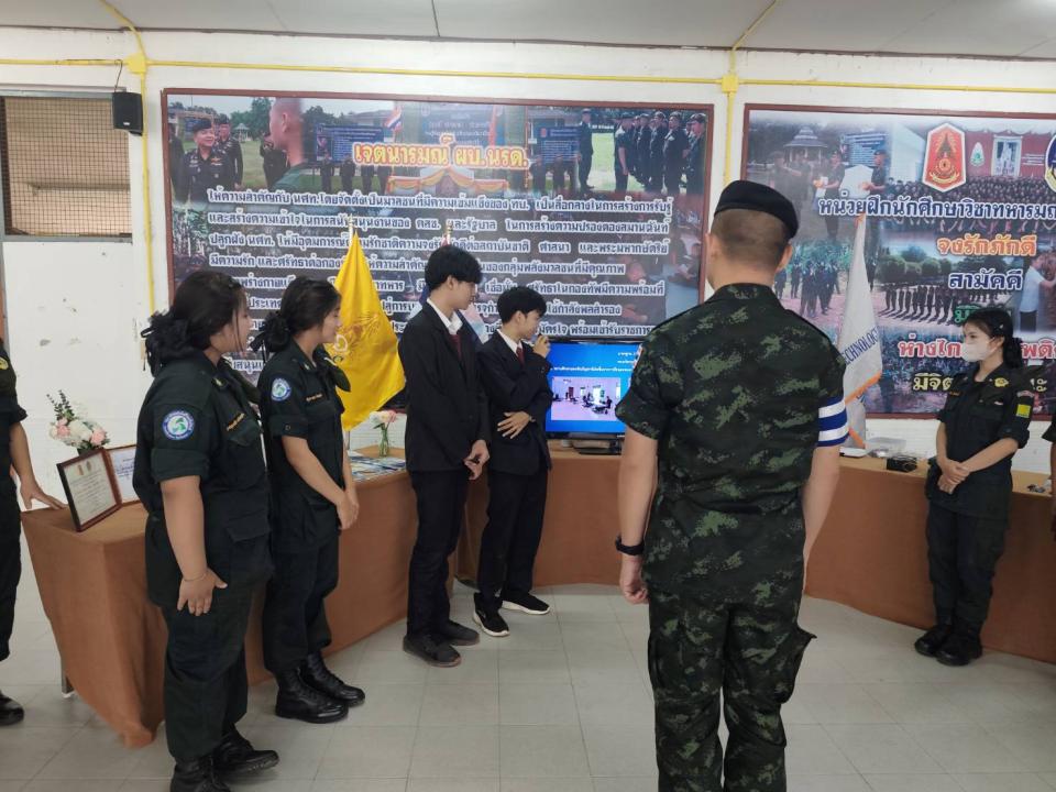 ภาพกิจกรรม : จัดบูธนิทรรศการเพื่อนำเสนอผลงานนวัตกรรมเครื่องช่วยฝึกนักศึกษาวิชาทหารและบรรยายสรุปรับตรวจศูนย์ฝึกแข่งขันสถานศึกษารวมใจ
