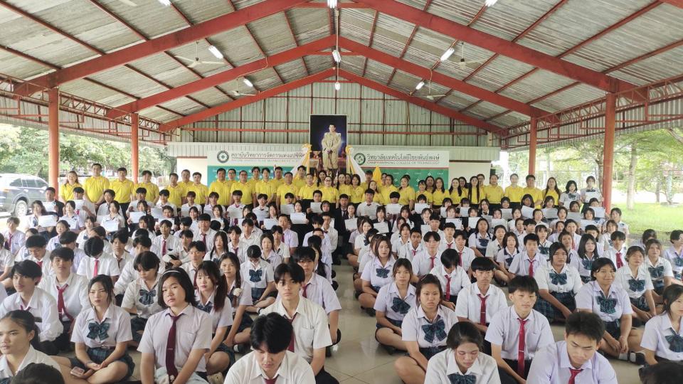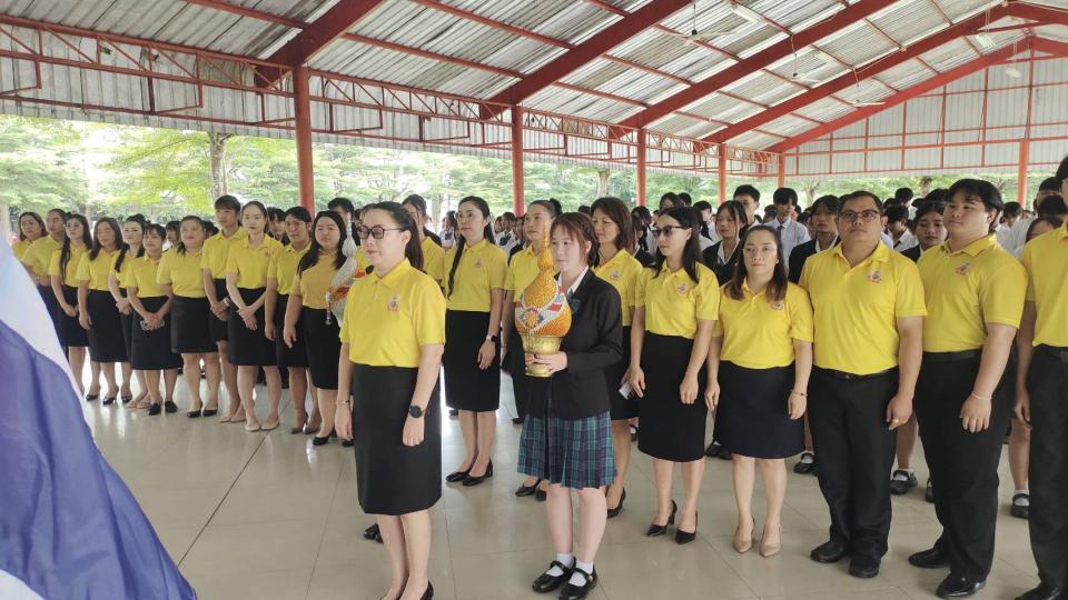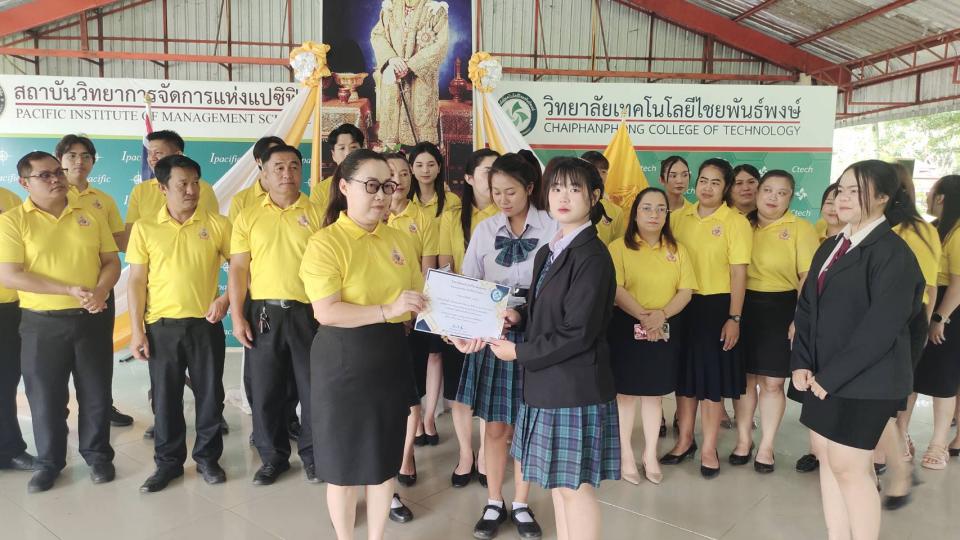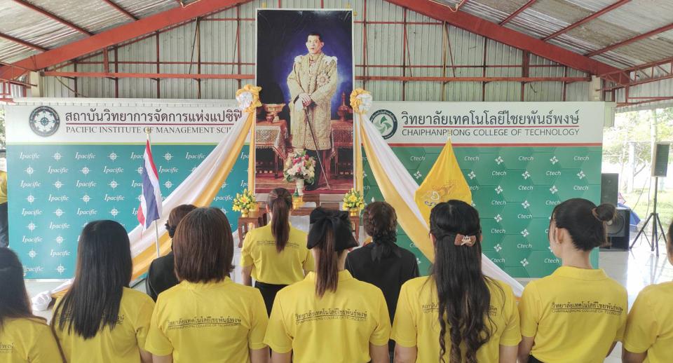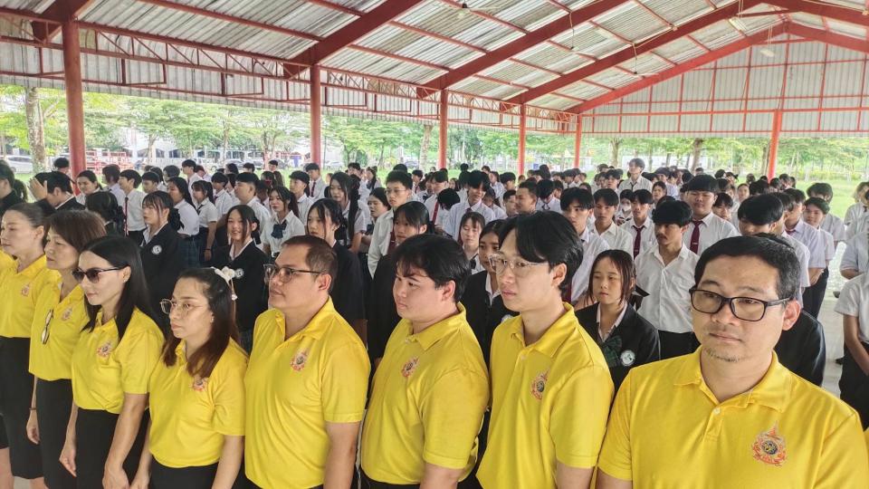 วันที่ 24 กรกฏาคม 2568 เวลา 9.00 น. ผศ.ดร.ผกาภรณ์ บุสบง ผู้อำนวยการวิทยาลัยเทคโนโลยีไชยพันธ์พงษ์ ถวายพานพุ่มทอง พุ่มเงิน และเปิดกรวยเพื่อถวายพระพรชัยมงคล พร้อมทั้งนำกล่าวถวายราชสดุดีเฉลิมพระเกียรติและนำกล่าวถวายพระพรชัยมงคล และนำ คณะครู อาจารย์ นักศึกษา ร่วมร้องเพลงสรรเสริญพระบารมีและเพลงสดุดีมหาราช ณ อาคารเอนกประสงค์