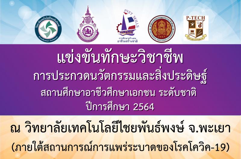 การแข่งขันทักษะวิชาชีพ การประกวดนวัตกรรมและสิ่งประดิษฐ์ สถานศึกษาอาชีวศึกษาเอกชน ระดับชาต ปีการศึกษา 2564 ณ.วิทยาลัยเทคโนโลยีไชยพันธ์พงษ์ จ.พะเยา (ภายใต้สถานการณ์การแพร่ระบาดของโรคโควิค-19)