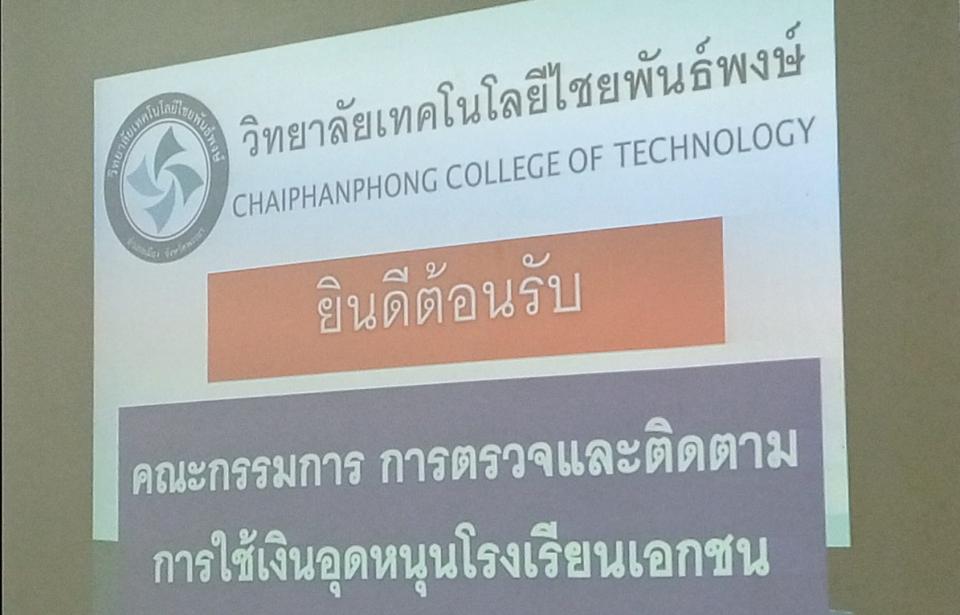 รับการตรวจและติดตามการใช้เงินอุดหนุนโรงเรียนเอกชนประจำปี 2565 ของวิทยาลัยเทคโนโลยีไชยพันธ์พงษ์ (4 ก.ค. 2565)
