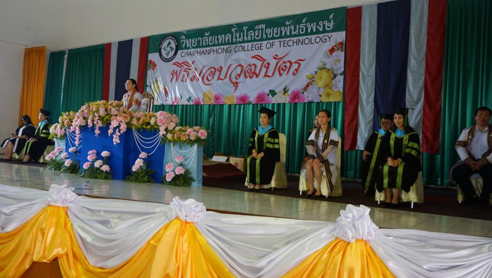 วิทยาลัยเทคโนโลยีไชยพันธ์พงษ์จัดพิธีมอบวุฒิบัตรให้กับนักศึกษาระดับประกาศนียบัตรวิชาชีพ ชั้นปีที่ 3(ปวช 3.) และระดับประกาศนียบัตรวิชาชีพชั้นสูง ชั้นปีที่ 2(ปวส 2.) โดยได้รับเกียรติจาก ผศ.ดร.ผกาภรณ์ บุสบง ผู้อำนวยการวิทยาลัยเทคโนโลยีไชยพันธ์พงษ์ เป็นผู้มอบวุฒิบัตรให้กับนักศึกษารวมทั้งกล่าวโอวาทให้กับนักศึกษา และมอบทุนการศึกษาให้กับนักศึกษาระดับ ปวช. ที่ศึกษาต่อระดับ ปวส. อีกด้วย และมีการร้องเพลงประสานเสียงเพื่อแสดงความยินดีจากนักศึกษารุ่นน้องอีกด้วย โดยภายในงานมีผู้ปกครองและผู้ที่ให้ความสนใจมาร่วมแสดงความยินดีกับนักศึกษาเป็นจำนวนมาก