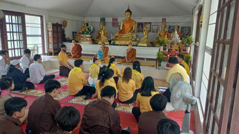 ผู้ช่วยศาสตราจารย์ ดร.ผกาภรณ์ บุสบง รองอธิการบดีและผู้อำนวยการ นำคณะอาจารย์ บุคลากรและนักศึกษา สถาบันวิทยาการจัดการแห่งแปซิฟิค ร่วมกับ วิทยาลัยเทคโนโลยีไชยพันธ์พงษ์ ดำเนินกิจกรรมโครงการถวายเทียนจำนำพรรษา ประจำปี2567 พร้อมด้วยกิจกรรมปลูกต้นไม้และพัฒนาวัด เพื่อสืบทอดพระพุทธศาสนาและถวายเป็นพุทธบูชา ณ วัดศรีอุดมธรรม