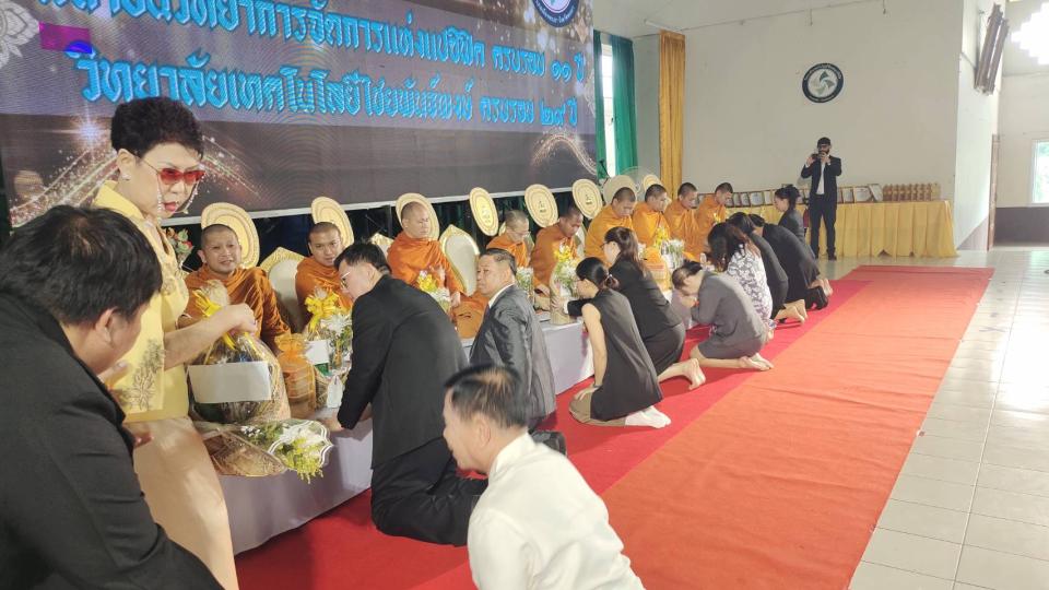 ภาพกิจกรรม : ภาพบรรยากาศพิธีสงฆ์เนื่องในวันสถาปนาวิทยาลัยเทคโนโลยีไชยพันธ์พงษ์ครบรอบ 29 ปีและสถาบันวิทยาการจัดการแห่งแปซิฟิคครบรอบ 11 ปี ประจําปี 2568