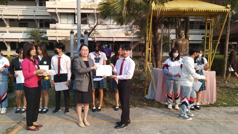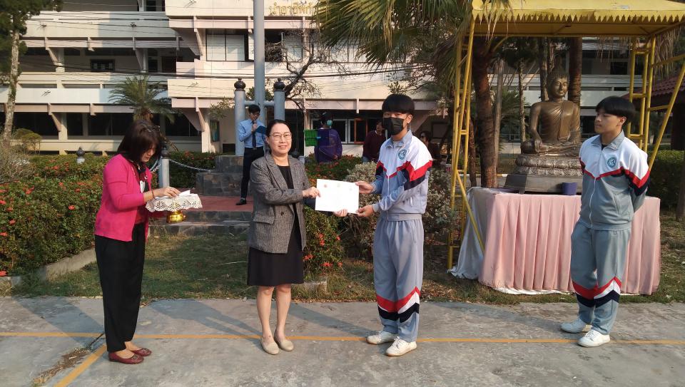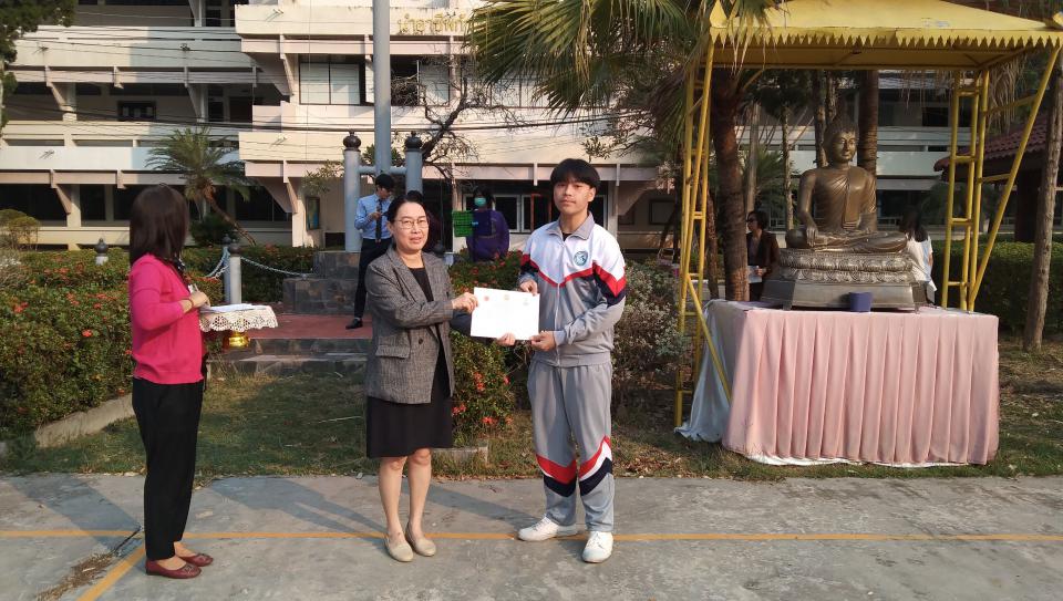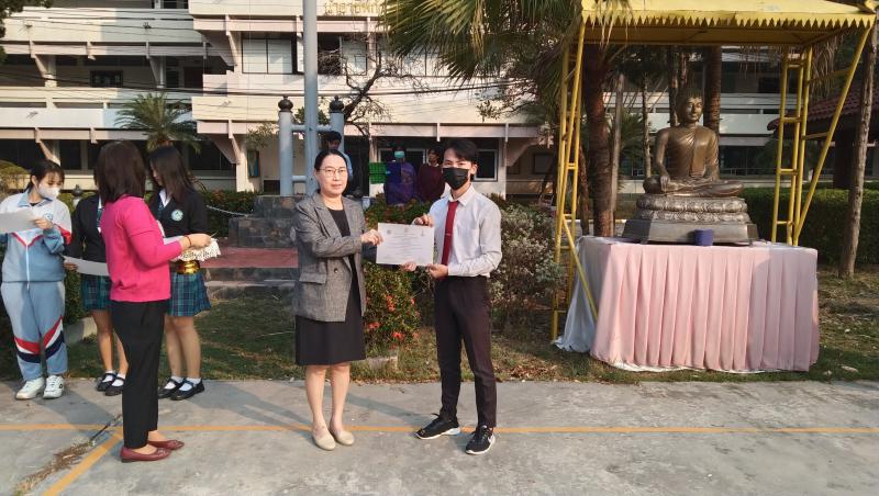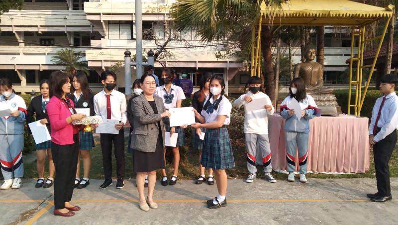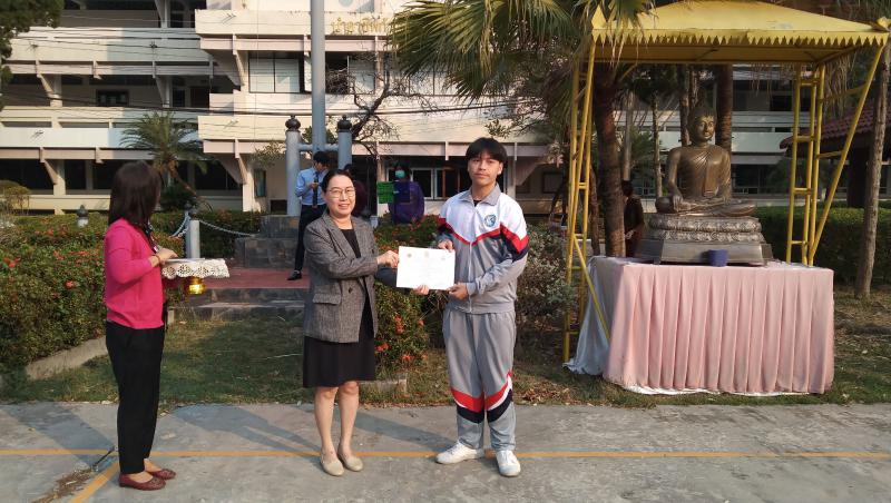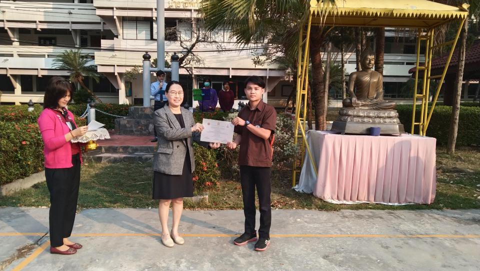 ภาพกิจกรรม : มอบวุฒิบัตรให้กับนักศึกษาที่ได้รับรางวัล ในการแข่งขันทักษะวิชาชีพ การประกวดนวัตกรรมสิ่งประดิษฐและกีฬา สถานศึกษาอาชีวศึกษาเอกชน ระดับชาติ ประจำปีการศึกษา 2565
